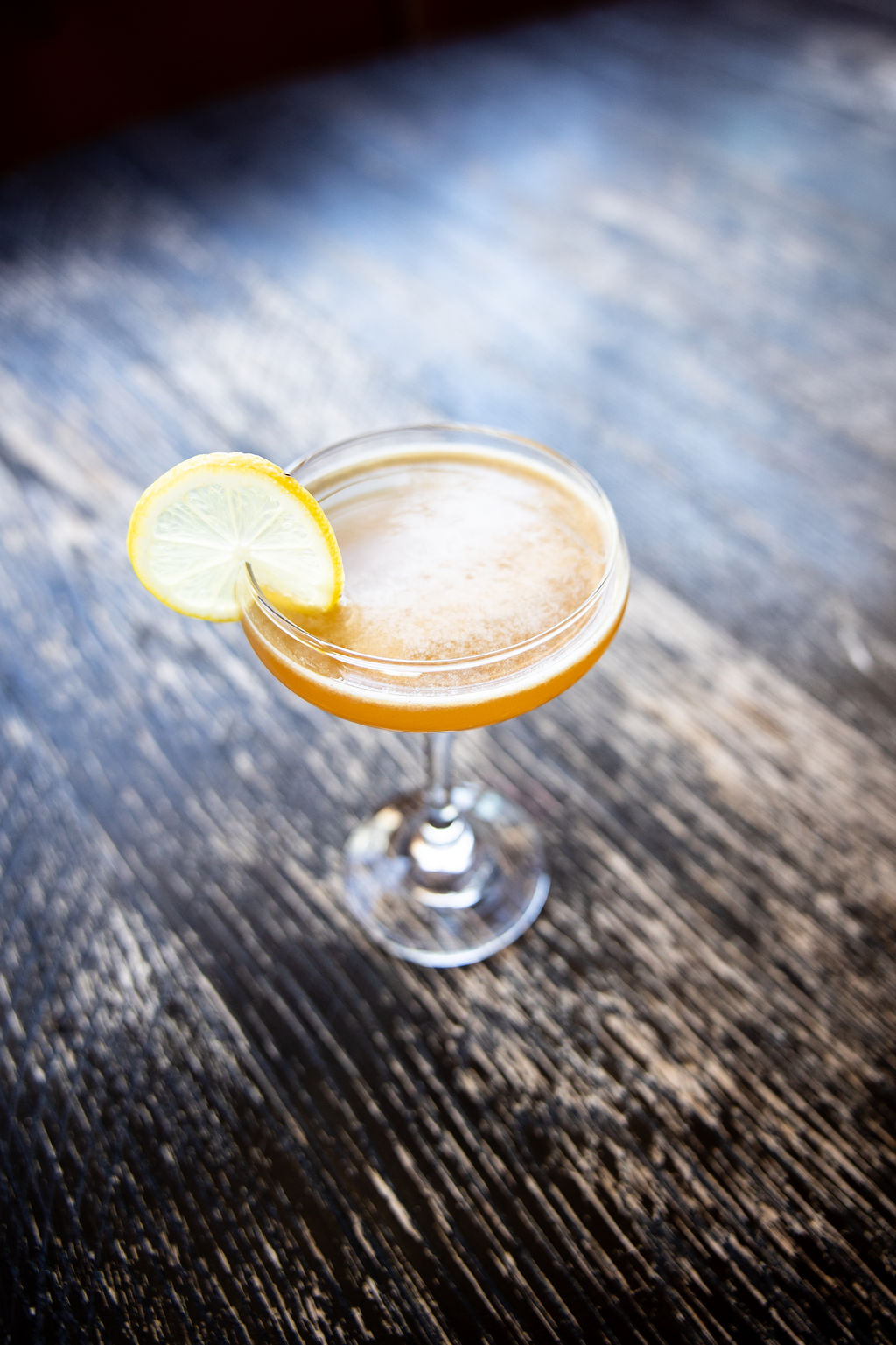 Apple Brandy with hand-squeezed lemon juice, and wildflower honey shaken with a housemade apple butter and finished with an expression of lemon oils served up in a coupe.