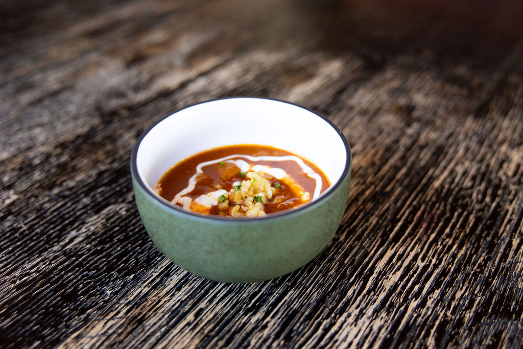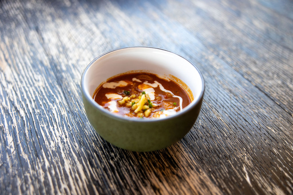 Oklahoma raised brisket, creme fresh, red bell pepper, paprika, and cream topped with lemon caraway spaetzle.